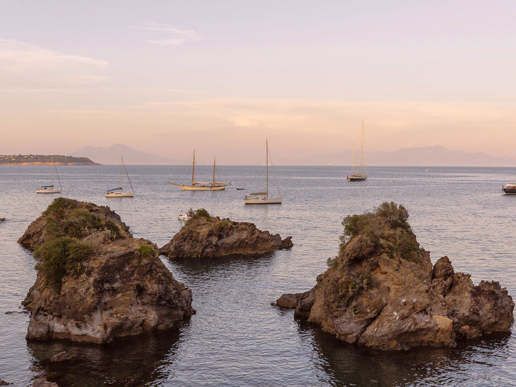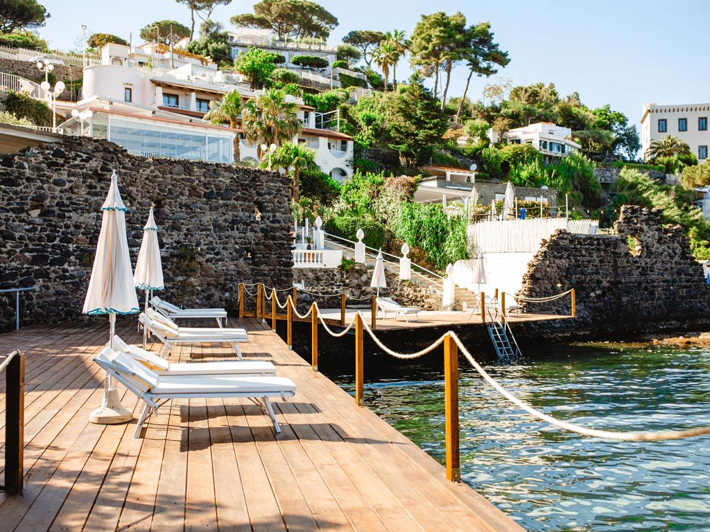 Al Delfini il mare è davvero di casa. Bastano pochi gradini, proprio di fronte alla hall, per ritrovarsi davanti all’acqua, avvolti dal profumo di salsedine e dal calore del sole sulla pelle. La nostra discesa privata, nell’Area Marina Protetta della Baia di Cartaromana, è un angolo tranquillo con vista sul Castello Aragonese e sull’inconfondibile blu di Ischia.